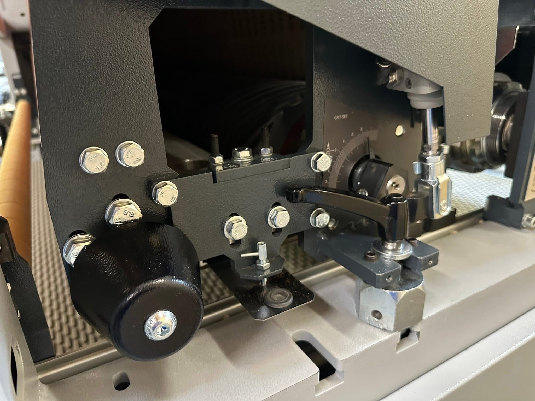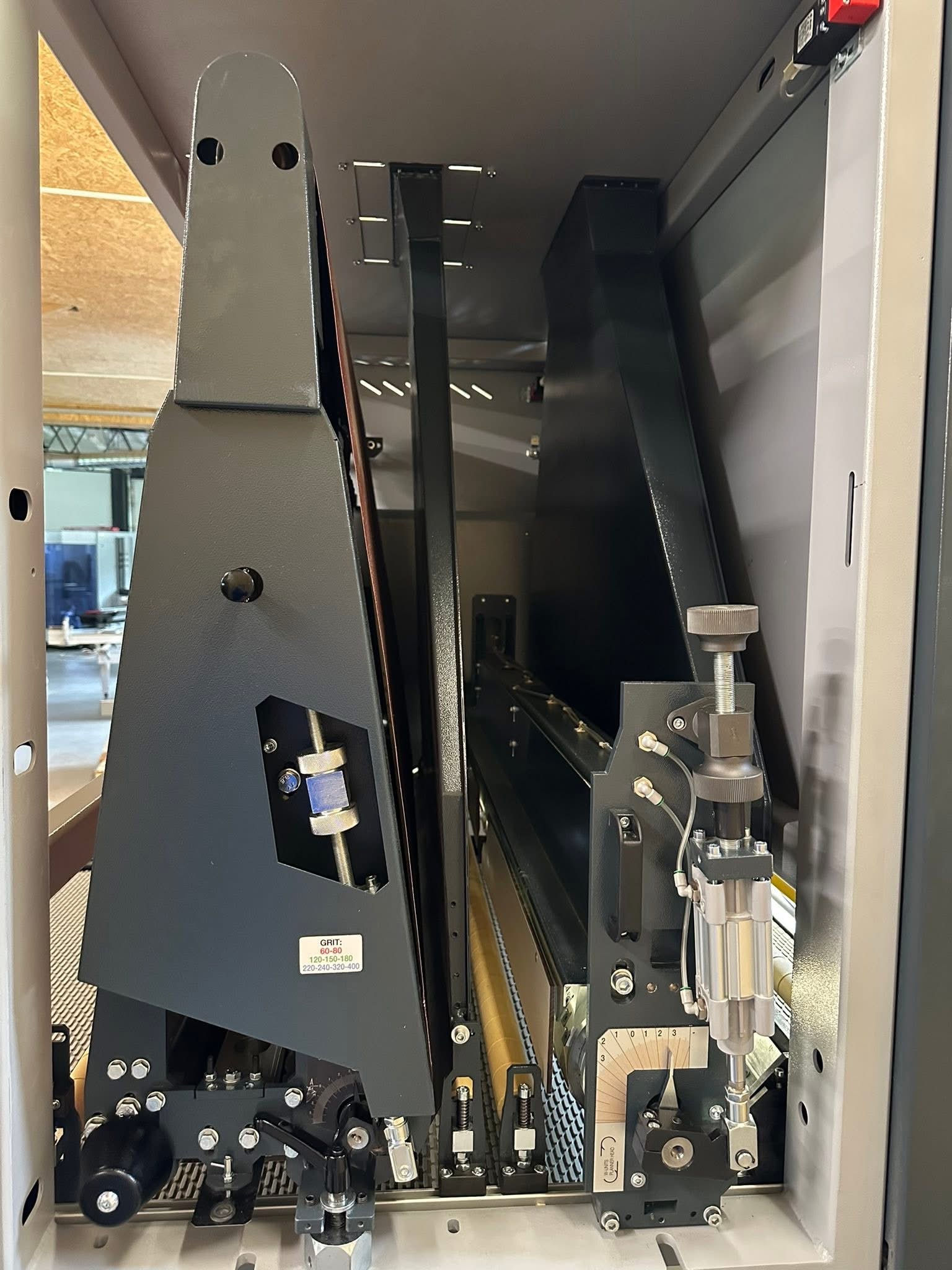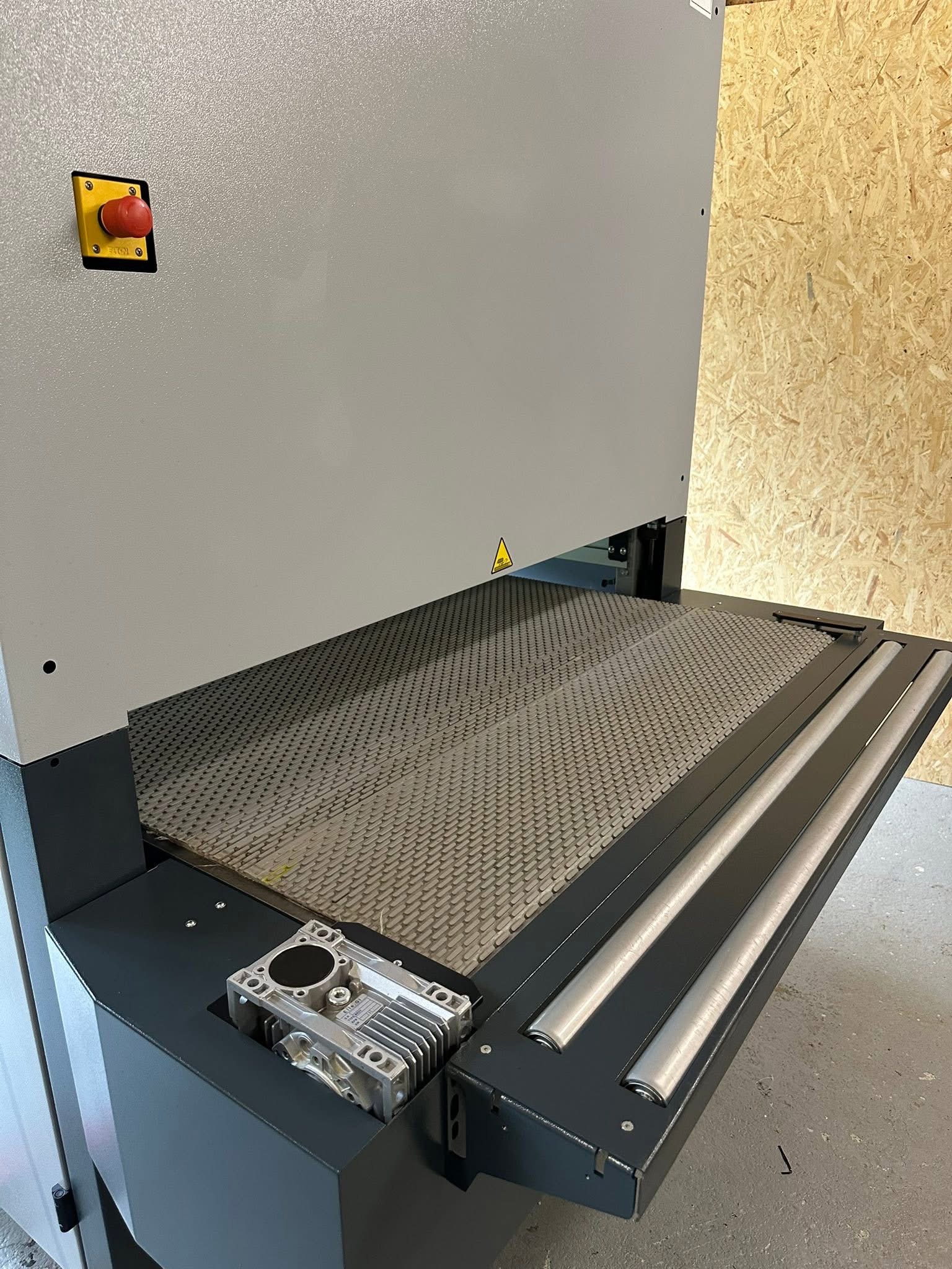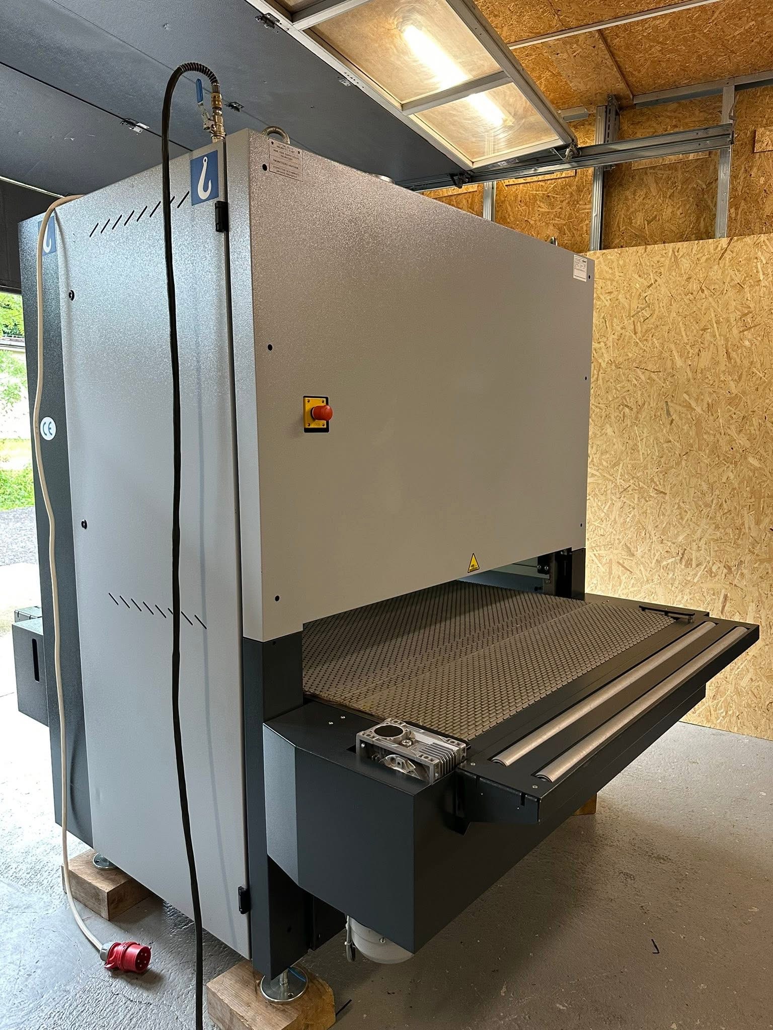 Rok produkcji 2020 , szer. robocza 1350 mm, zakres wysokości 3–170 mm. Posiada stół próżniowy , automatyczne centrowanie pasa, elektryczną regulację wysokości i ręczny panel.