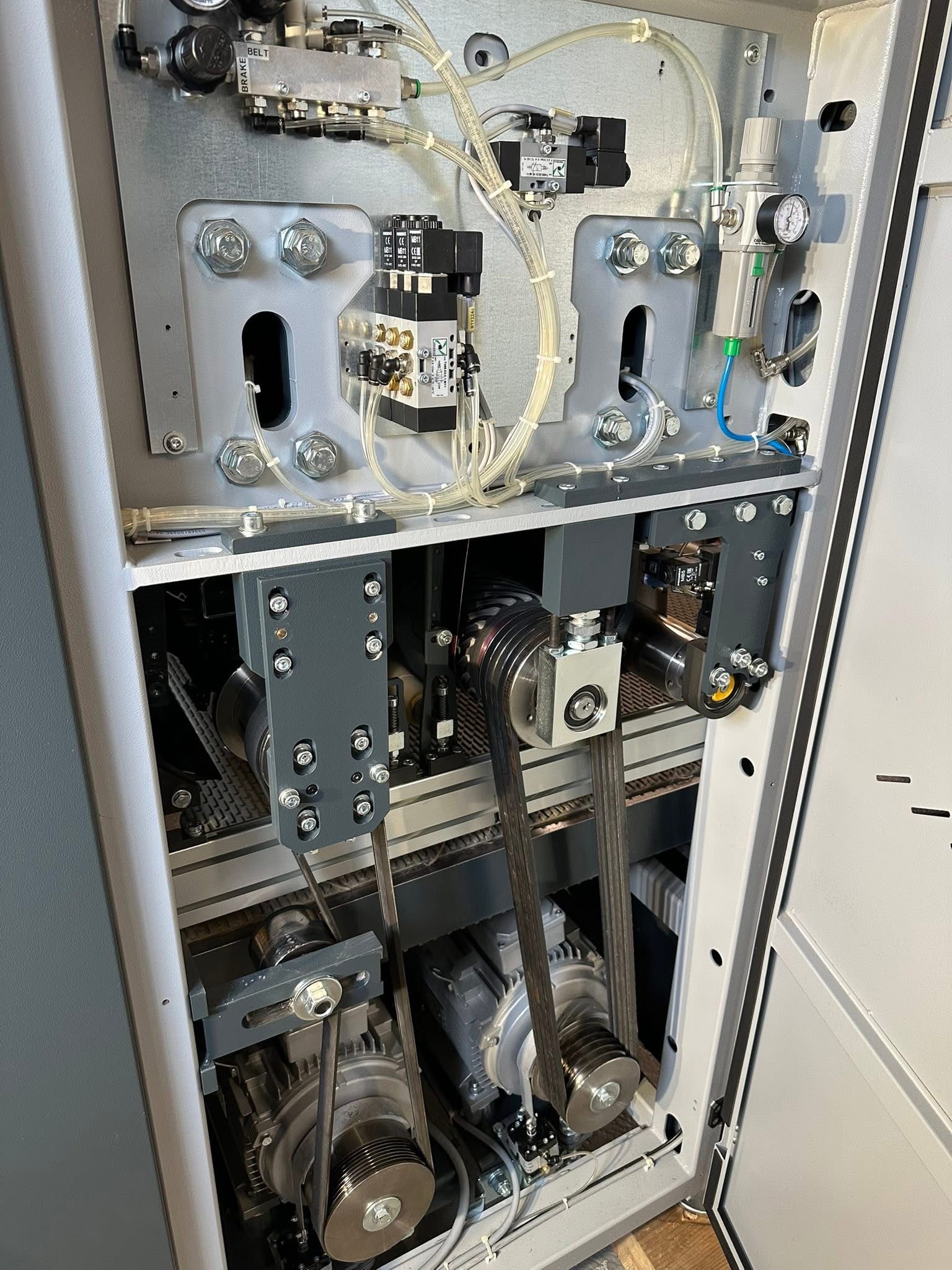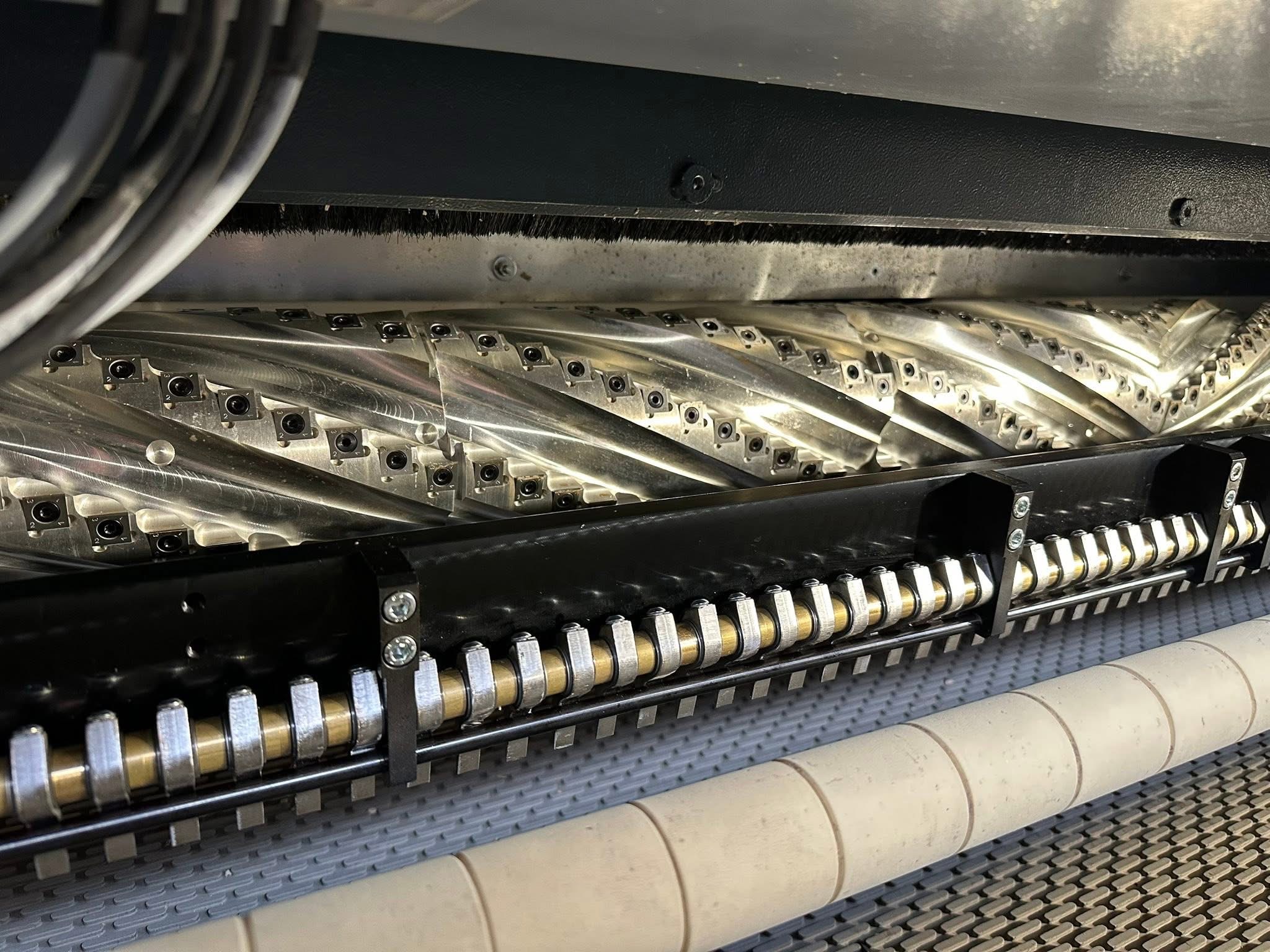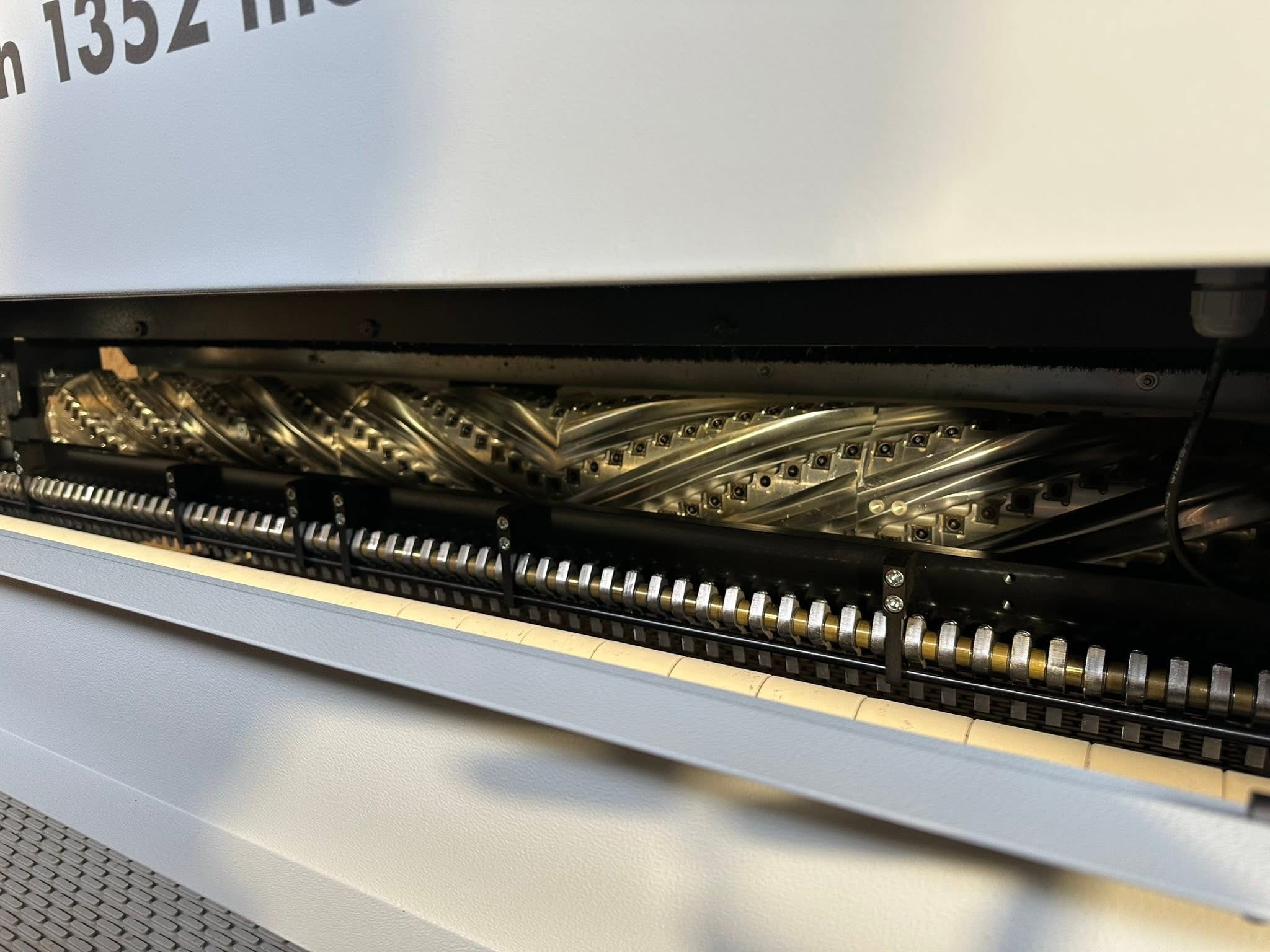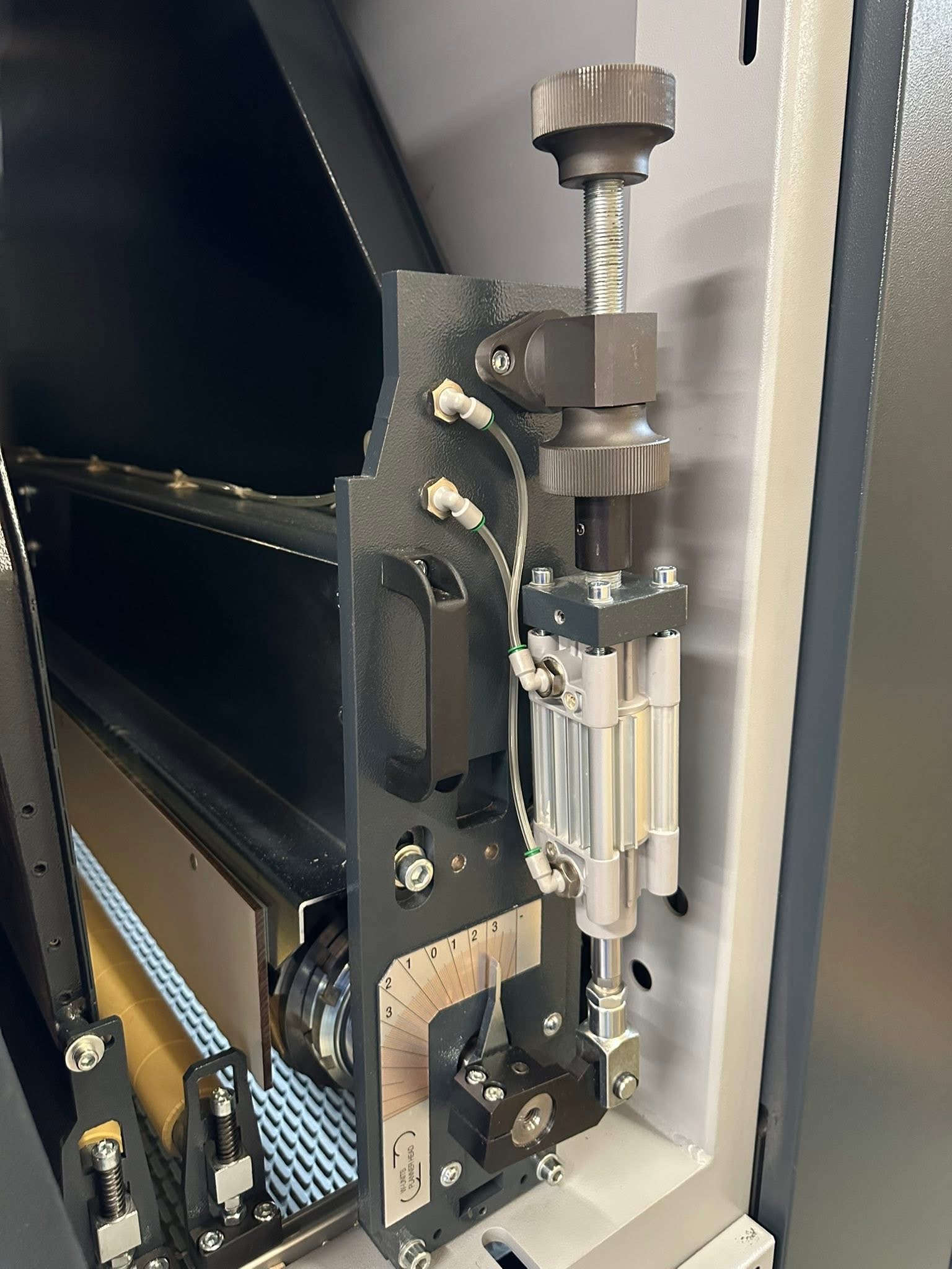 Rok produkcji 2020 , szer. robocza 1350 mm, zakres wysokości 3–170 mm. Posiada stół próżniowy , automatyczne centrowanie pasa, elektryczną regulację wysokości i ręczny panel.